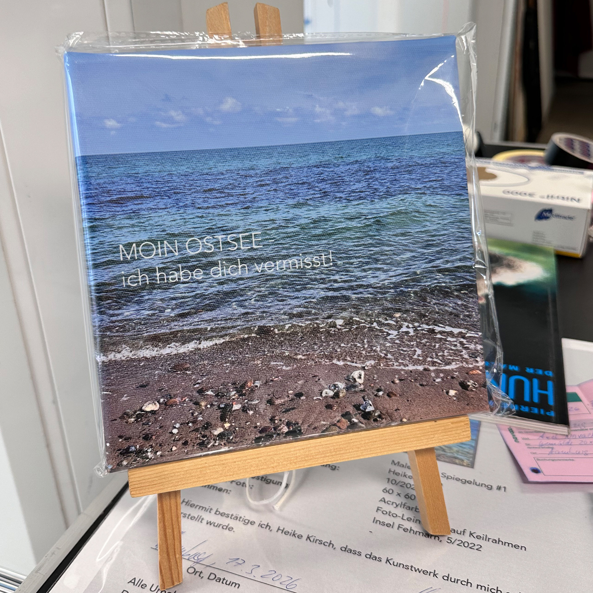 Druck auf Leinwand, 20 x 20 cm, Rückseite mit Foto-Karton versiegelt und signiert,