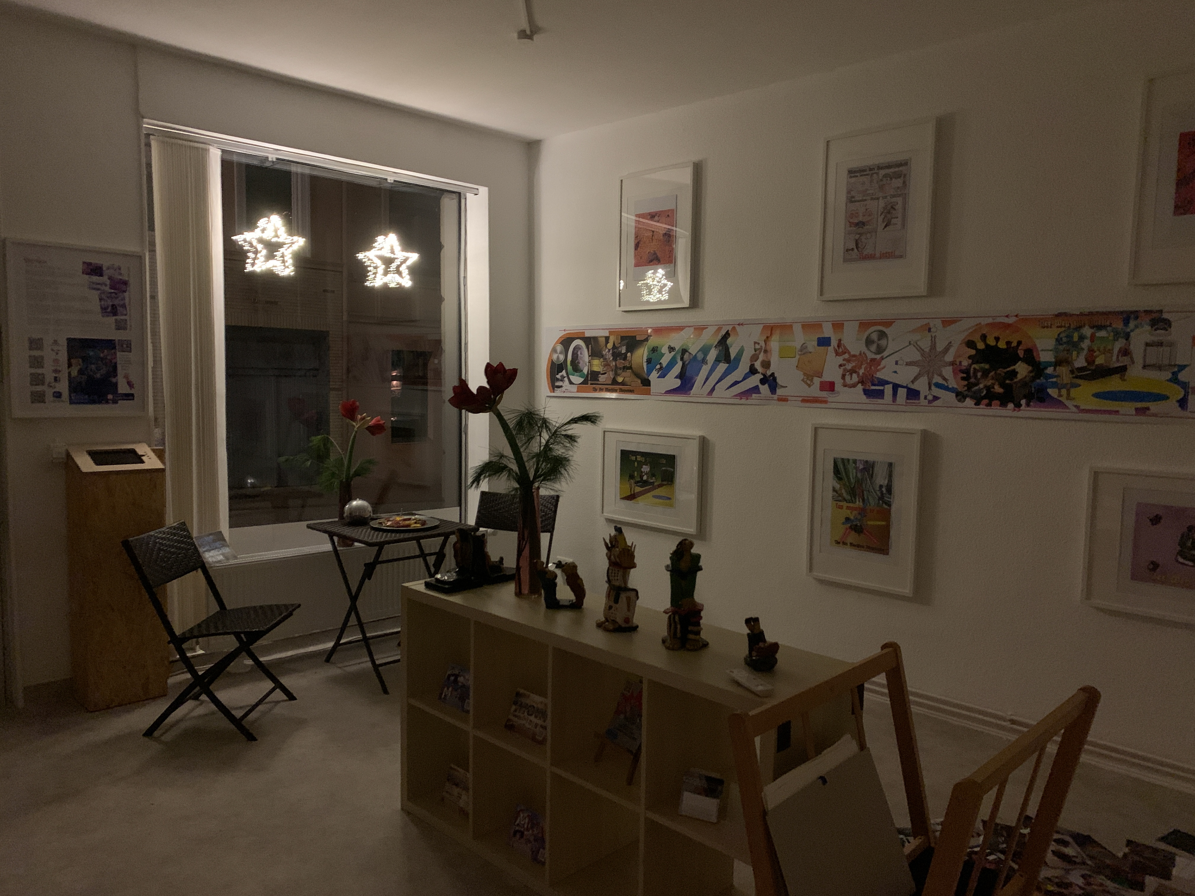 Für die Kunst-Ausstellung hatten sich acht Künstler*innen unter dem Titel ZWISCHEN.RÄUME zusammen gefunden und zeigten auf 40 qm rund 280 Kunstwerke - eine umfangreiche und beeindruckende Vielfalt: Malerei, Fotografie, Skulptur, Druckgrafik und Digital Pixel. Alle Arbeiten zeigen unterschiedliche Zwischenräume im Alltag oder in ganz aussergewöhnlichen Lebenssituationen.