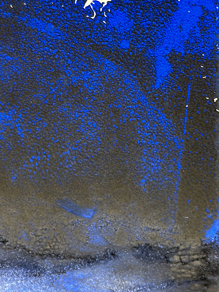 Deep Blue Transformation Four, 11/2025, Aqua-Linol Druckfarbe auf Papier (Monotypie), 14,8 x 21,0 cm
