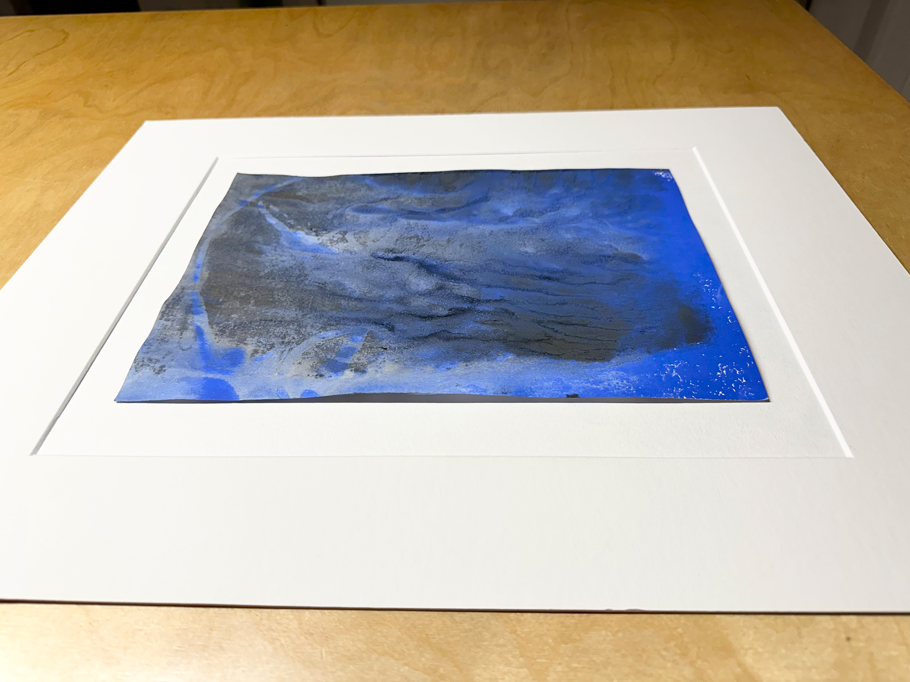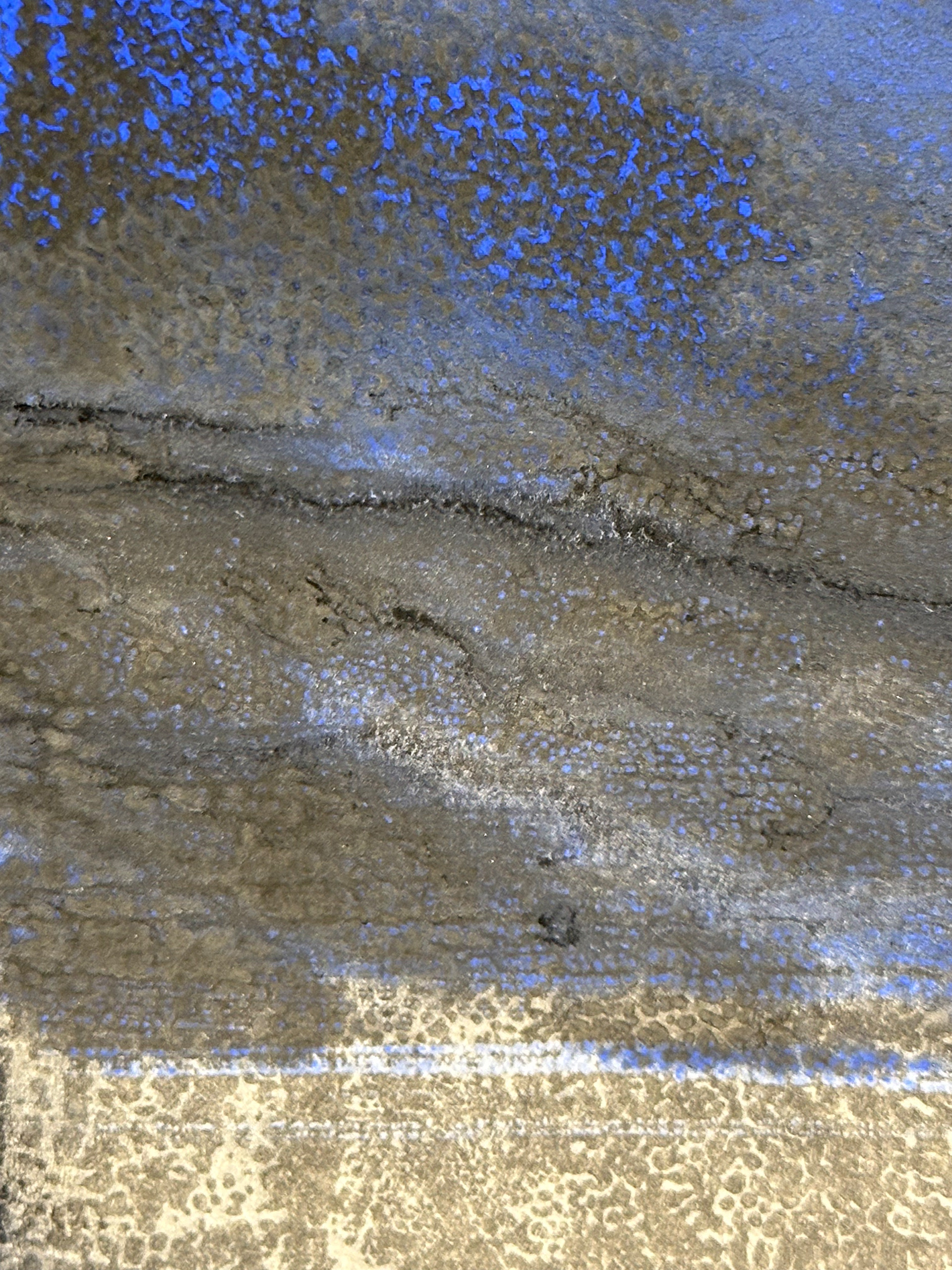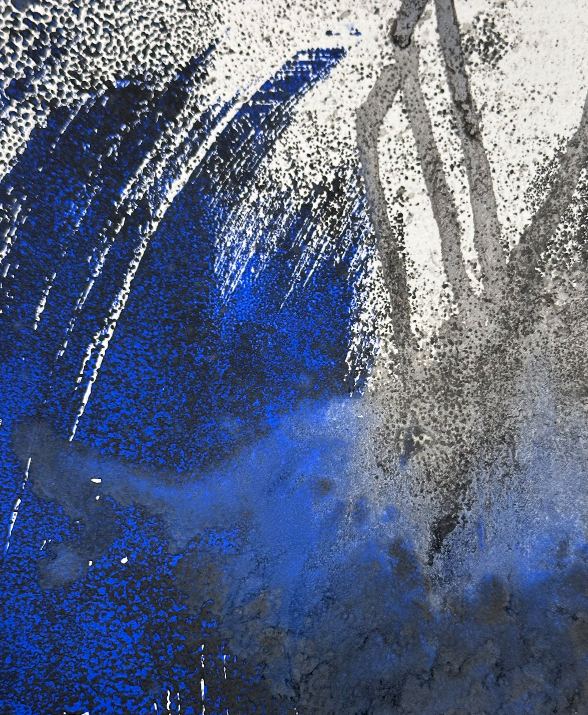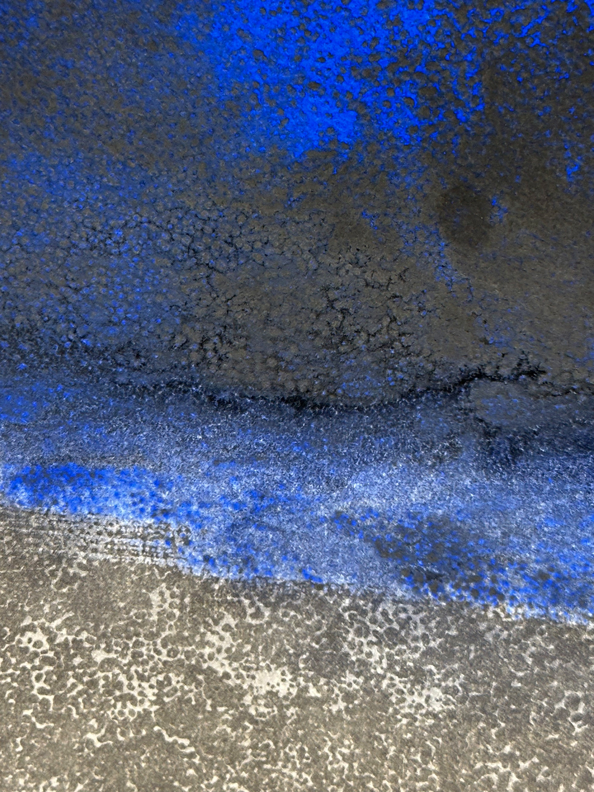 Kunsthistorische Betrachtung: „Deep Blue Transformation One“ positioniert Heike Kirsch in einem künstlerischen Feld, das ökologische Achtsamkeit mit abstrakter Bildsprache verbindet. Die Arbeit verweist sowohl formal als auch inhaltlich auf das Meer – nicht mimetisch, sondern atmosphärisch. Kirsch nutzt die Monotypie wie ein Labor der Elemente: Pigment bewegt sich wie Wasser, Linien erinnern an Strömungen, Farbschichten an geologische und ökologische Prozesse. Die Künstlerin überführt ihre Meerverbundenheit und ihr Engagement im Bereich des Meeresschutzes in eine visuelle Erfahrung, die zwischen Kontemplation und Mahnung oszilliert. Dadurch erhält das Werk nicht nur ästhetische, sondern auch kulturelle Relevanz innerhalb der gegenwärtigen environmental-art-Bewegung. (ChatGPT am 17.11.2025)