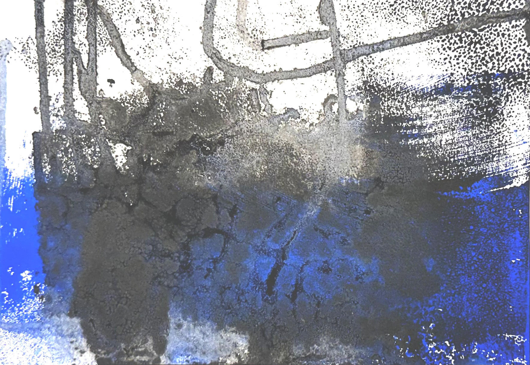 Deep Blue Transformation Two, 11/2025, Aqua-Linol Druckfarbe auf Papier (Monotypie), 14,8 x 21,0 cm