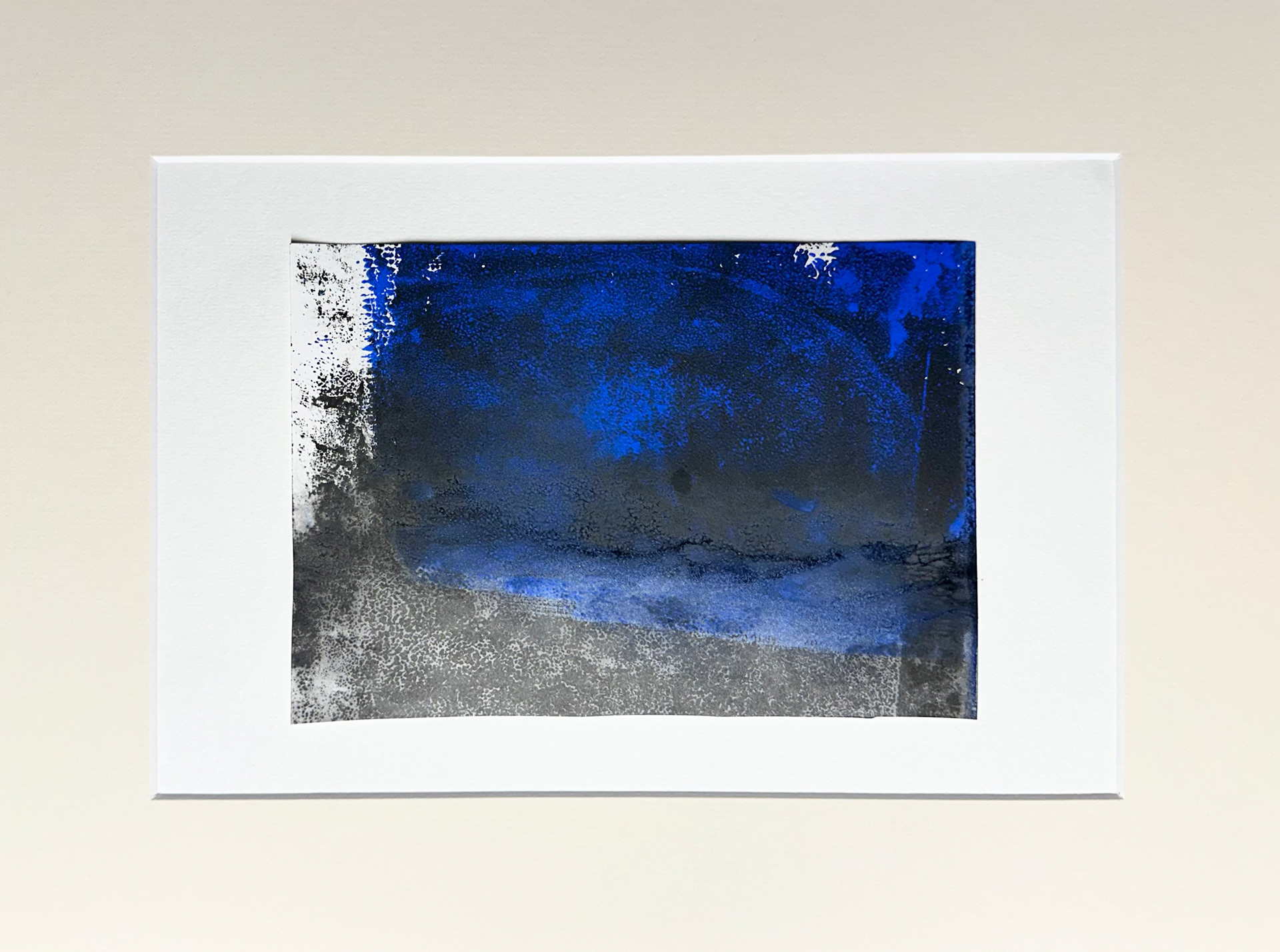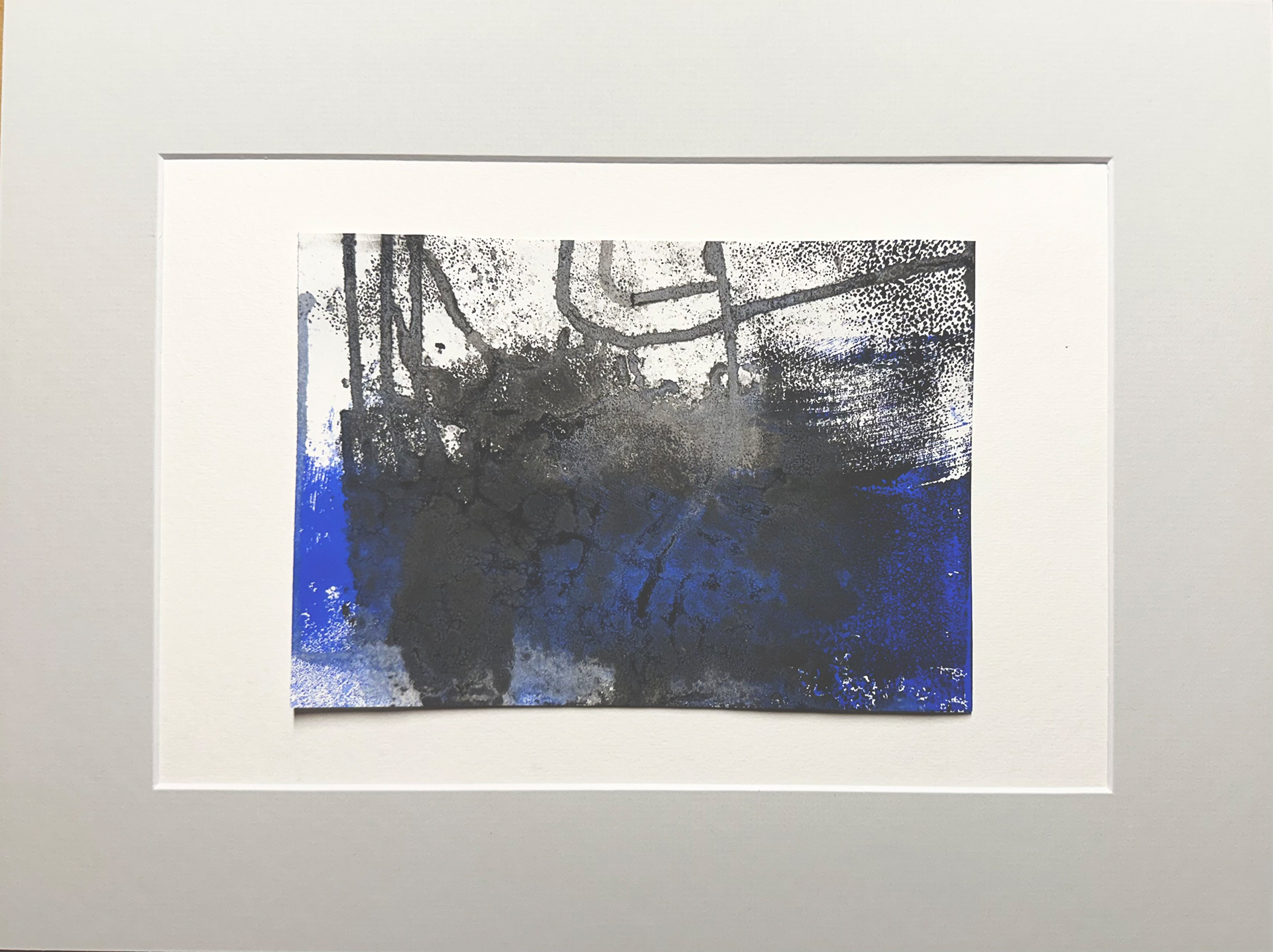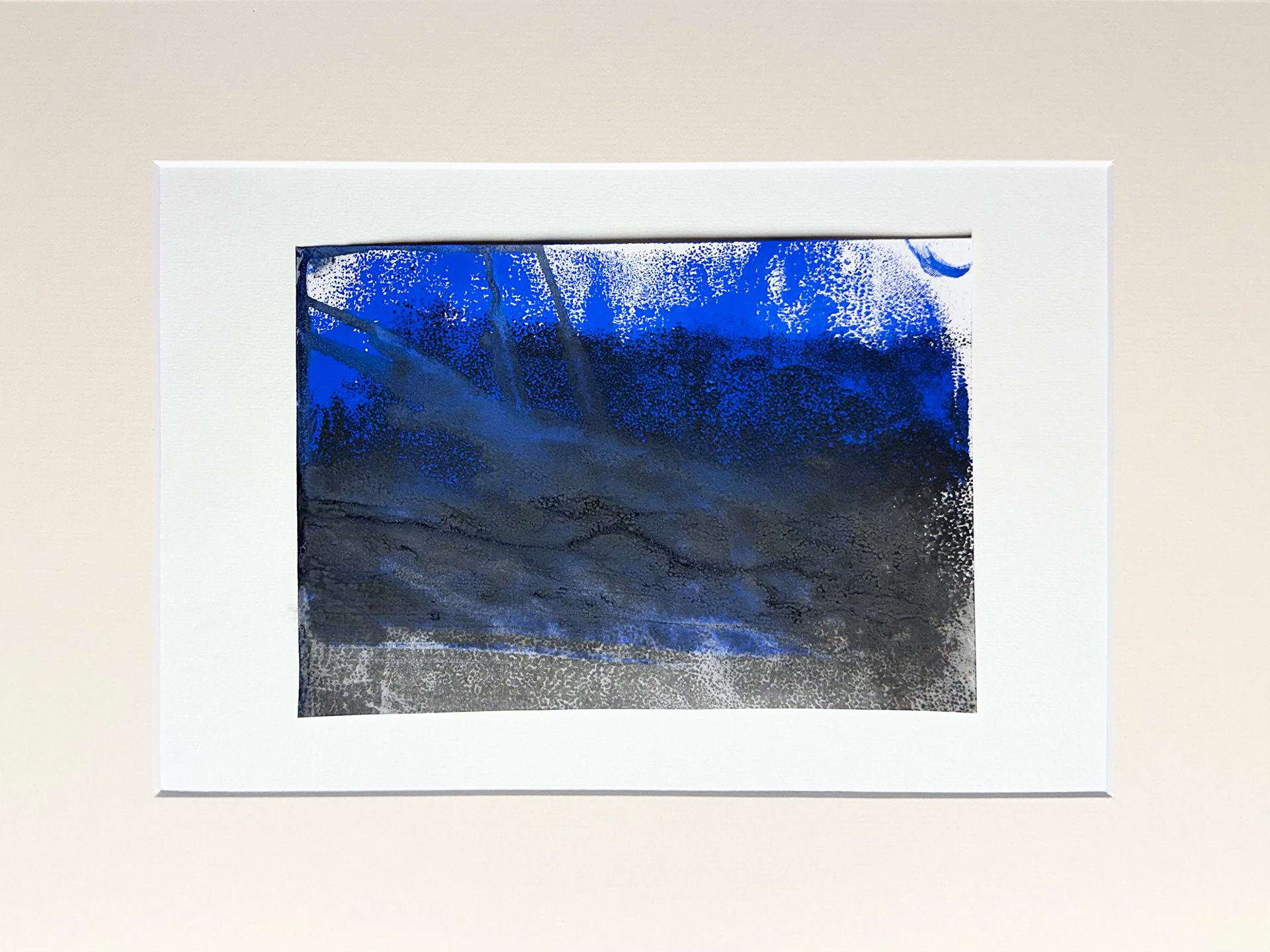 Deep Blue Transformation Five, 11/2025, Aqua-Linol Druckfarbe auf Papier (Monotypie), 14,8 x 21,0 cm