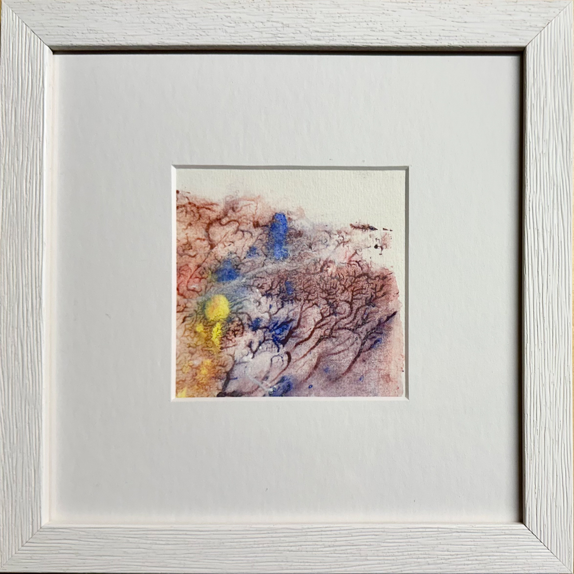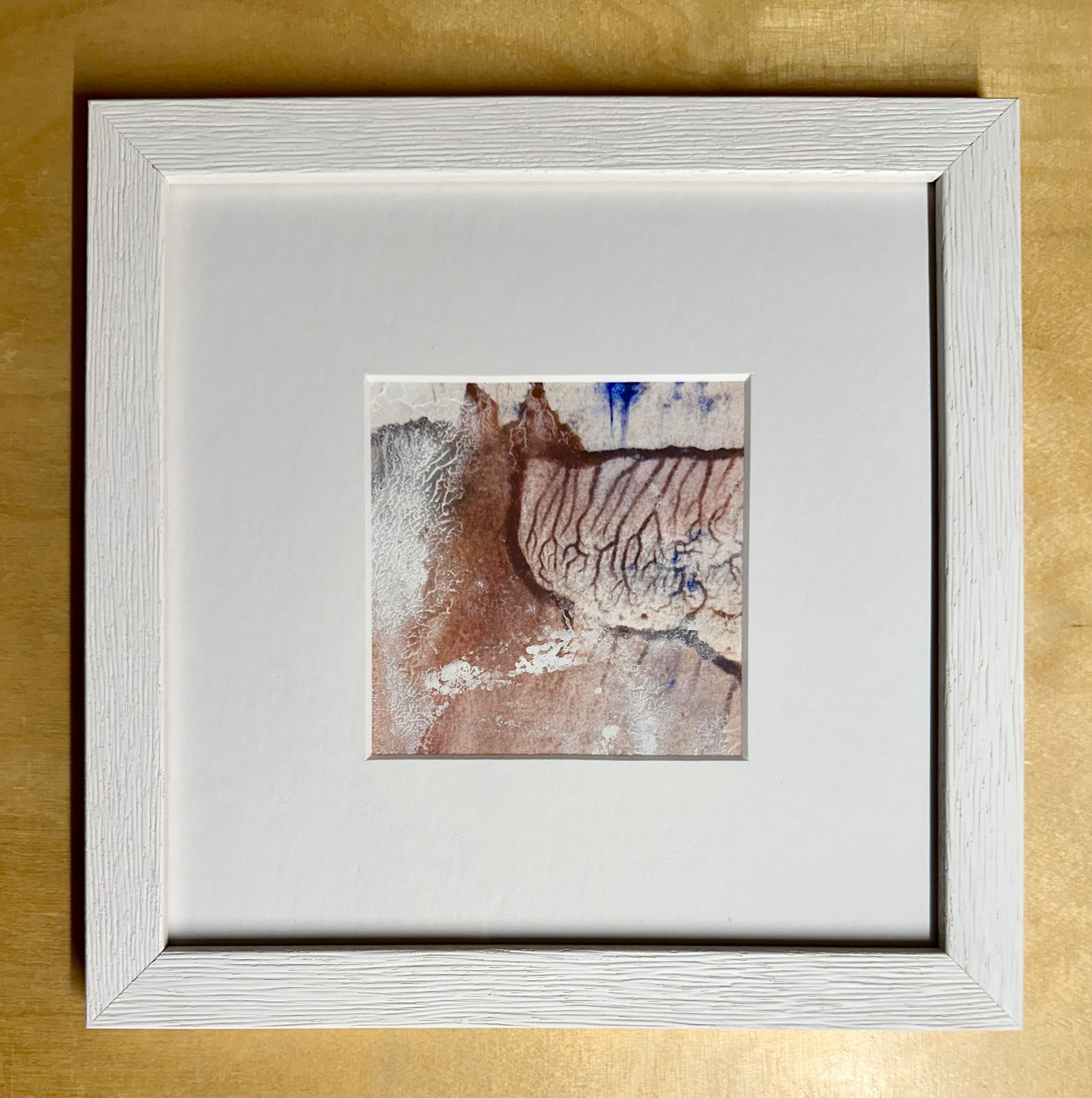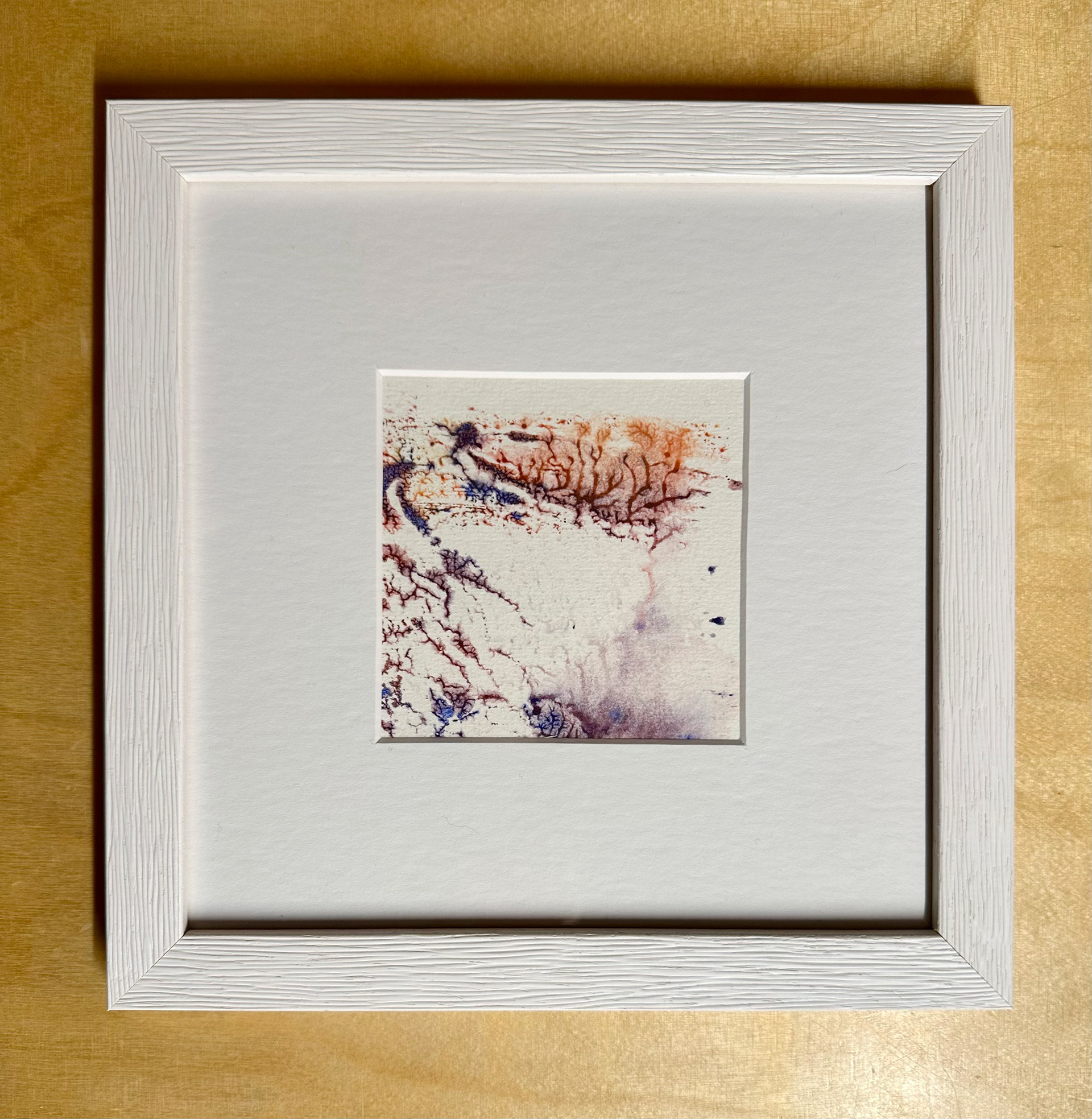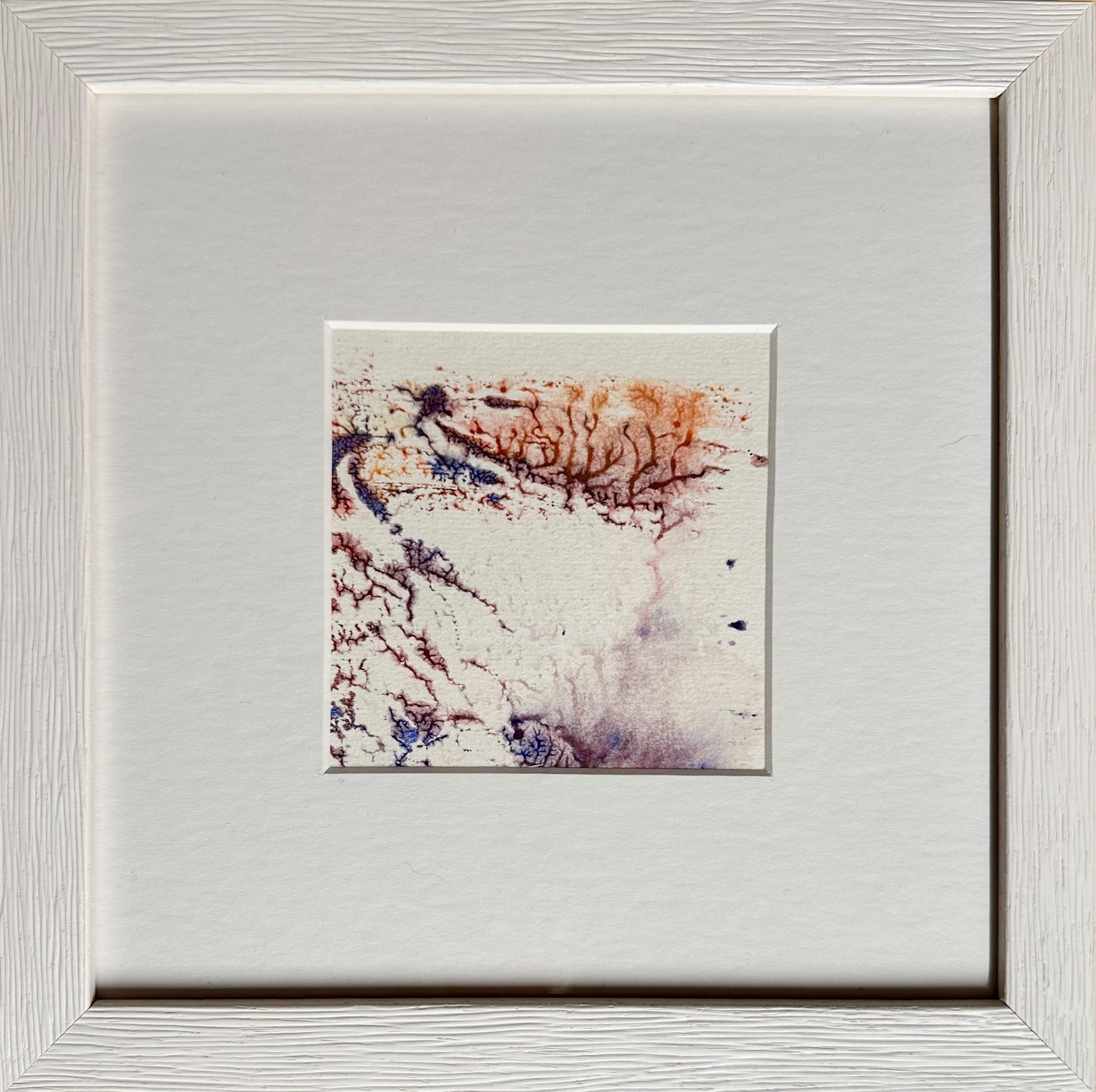 Winterlandschaft Sechs, 12/2025, Aqua-Linol Druckfarbe auf Fine Art Paper (Monotypie), 10 x 10 cm, Passepartout 20 x 20 cm