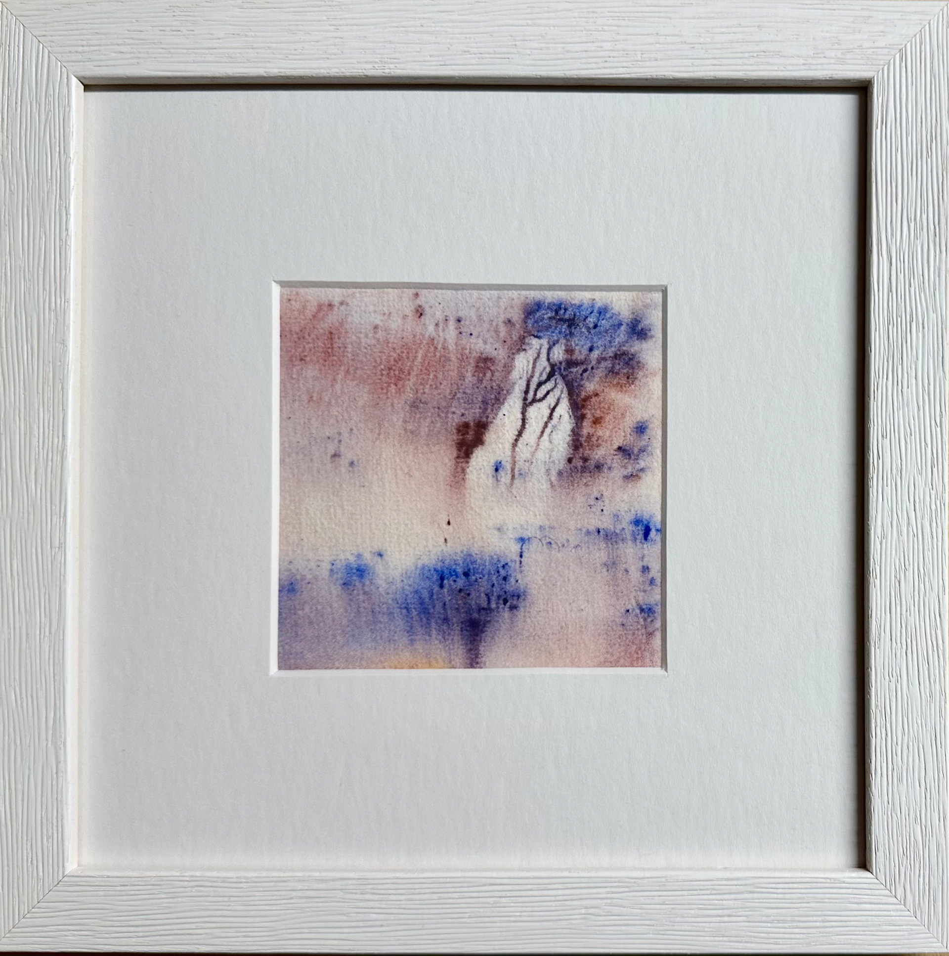 Winterlandschaft Zwei, 12/2025, Aqua-Linol Druckfarbe auf Fine Art Paper (Monotypie), 10 x 10 cm, Passepartout 20 x 20 cm