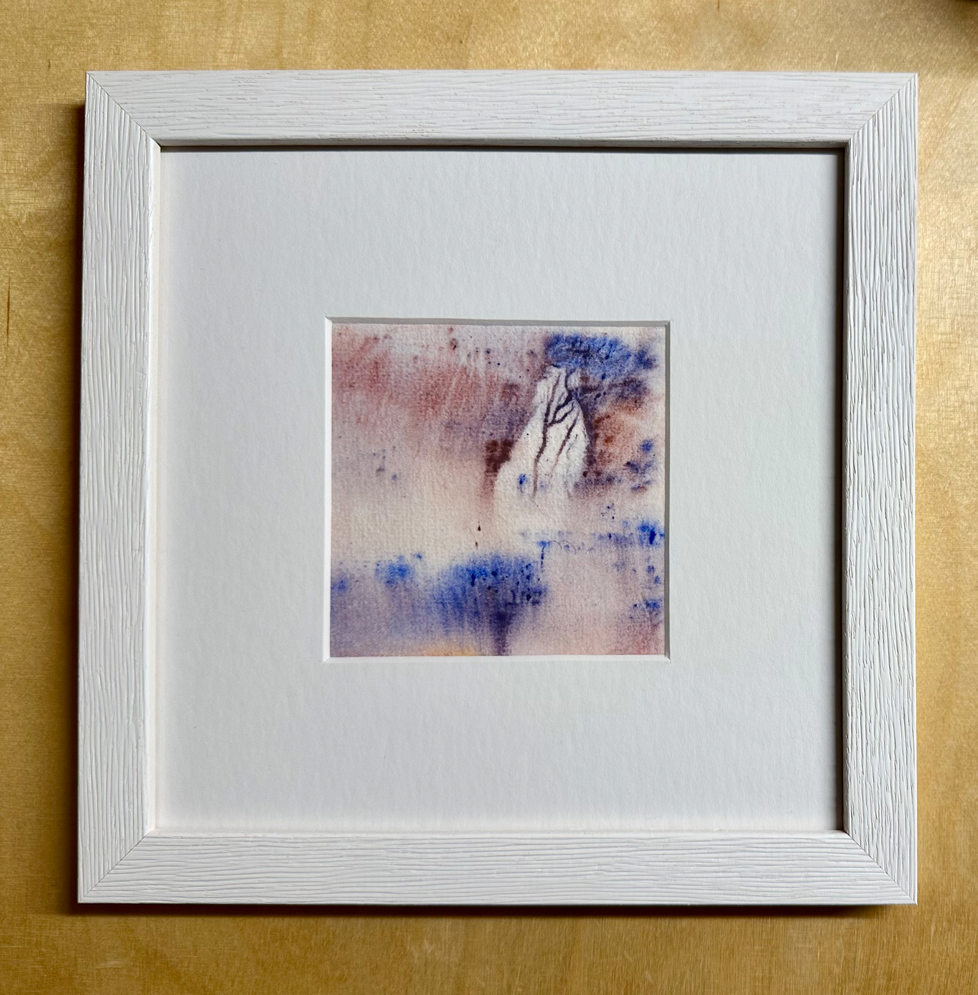 Winterlandschaft Vier, 12/2025, Aqua-Linol Druckfarbe auf Fine Art Paper (Monotypie), 10 x 10 cm, Passepartout 20 x 20 cm