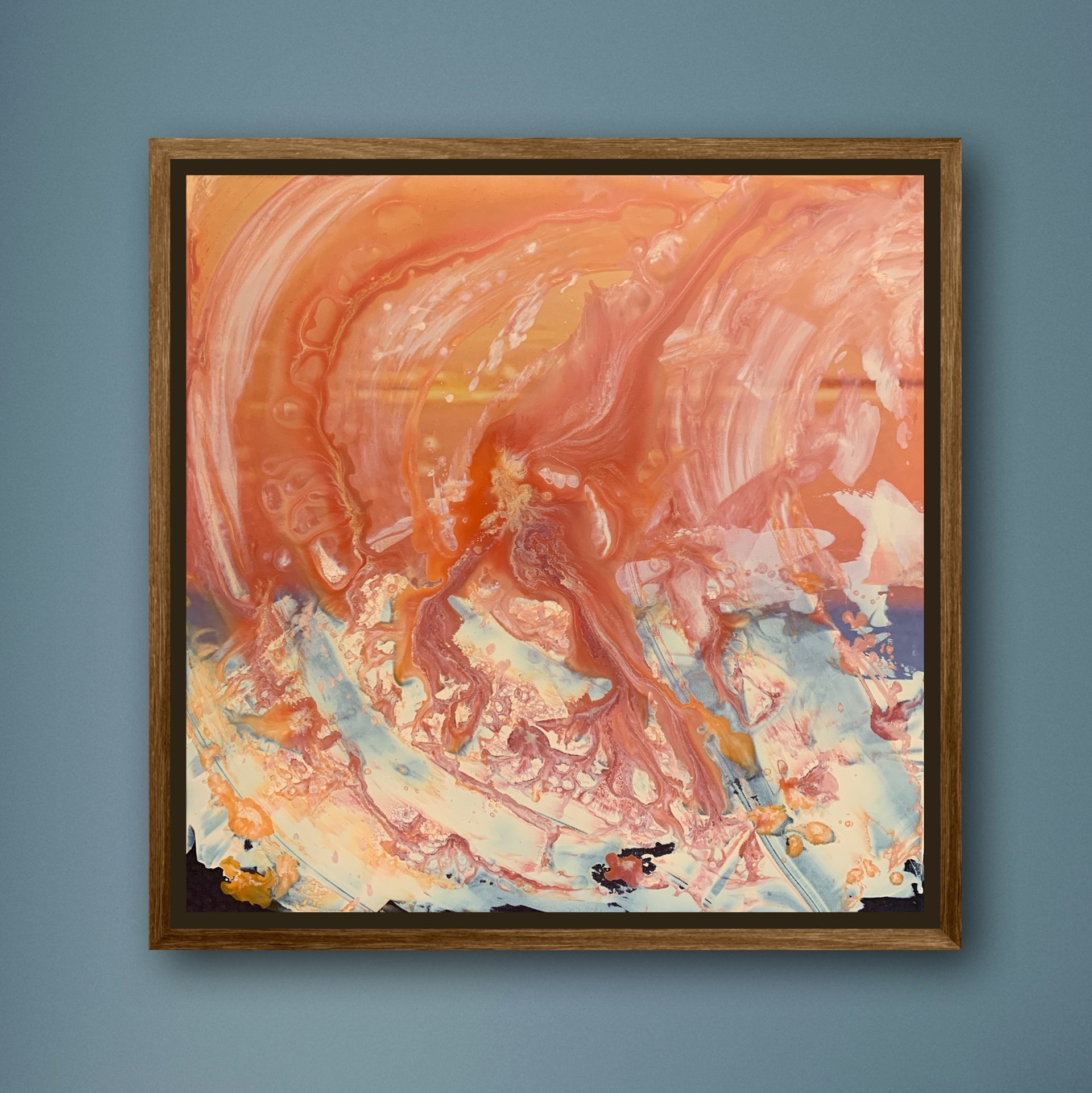 In der Serie "Poured Waves" setze ich meine malerische Betrachtung der Ostsee fort, die für mich ein Sehnsuchtsort ist, der mir Erholung vom Alltag bietet und Quelle meiner künstlerischen Inspiration ist. In den Kunstwerken lasse ich Wellen entstehen, die es in dieser Form nur sehr selten an stürmischen Tagen geben kann.