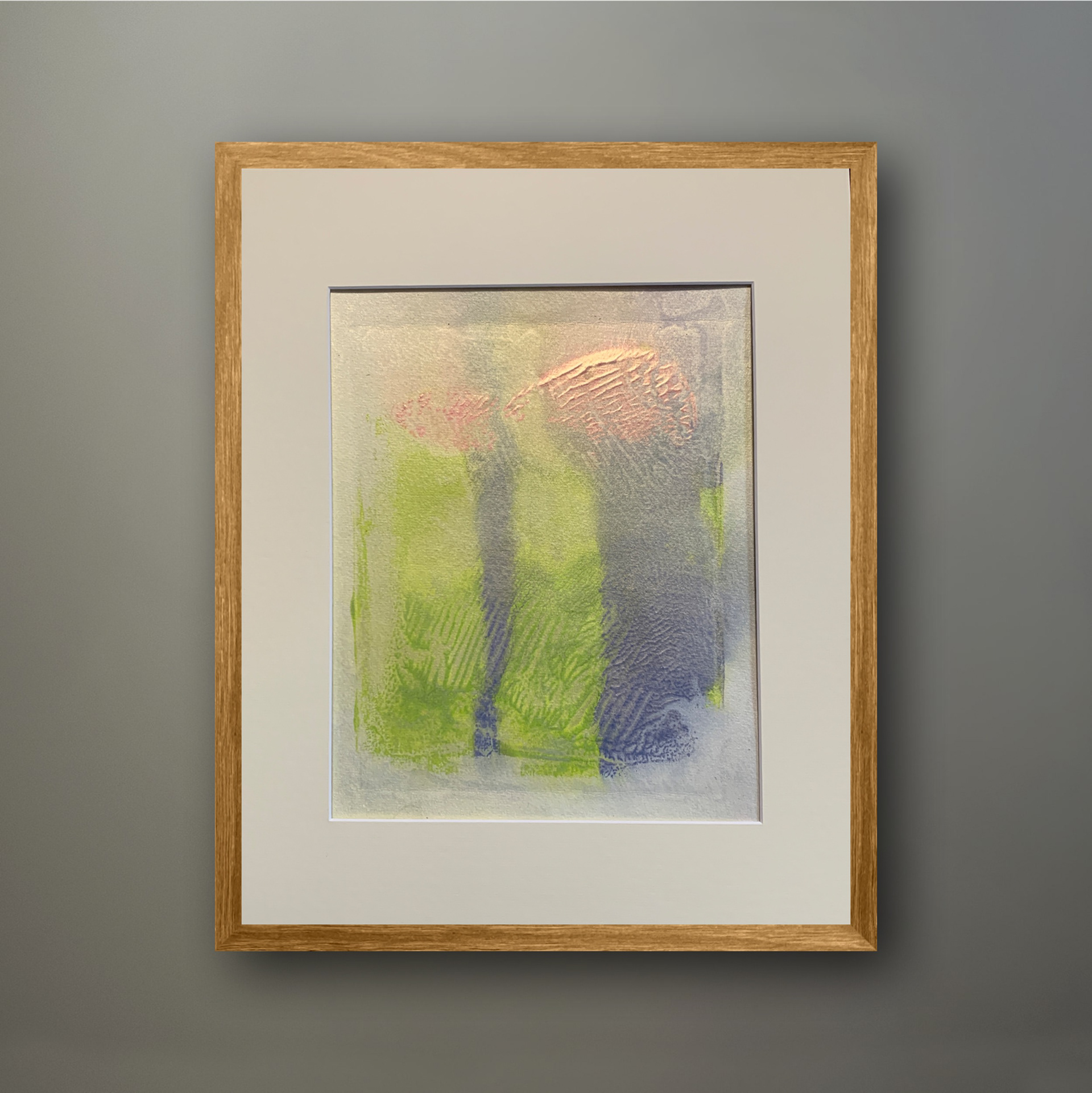 Bei der Erstellung von Monotypien hat mich interessiert, dass nicht direkt auf Papier oder Leinwand gearbeitet wird, sondern wie in diesem Fall auf einer Holzplatte die Farben aufgetragen werden. Und das Bild wird nicht durch die Druckform bestimmt, sondern durch die Art und Weise, wie der Auftrag der Farbe auf der Holzplatte erfolgt und dann durch Andruck davon abgenommen wird.